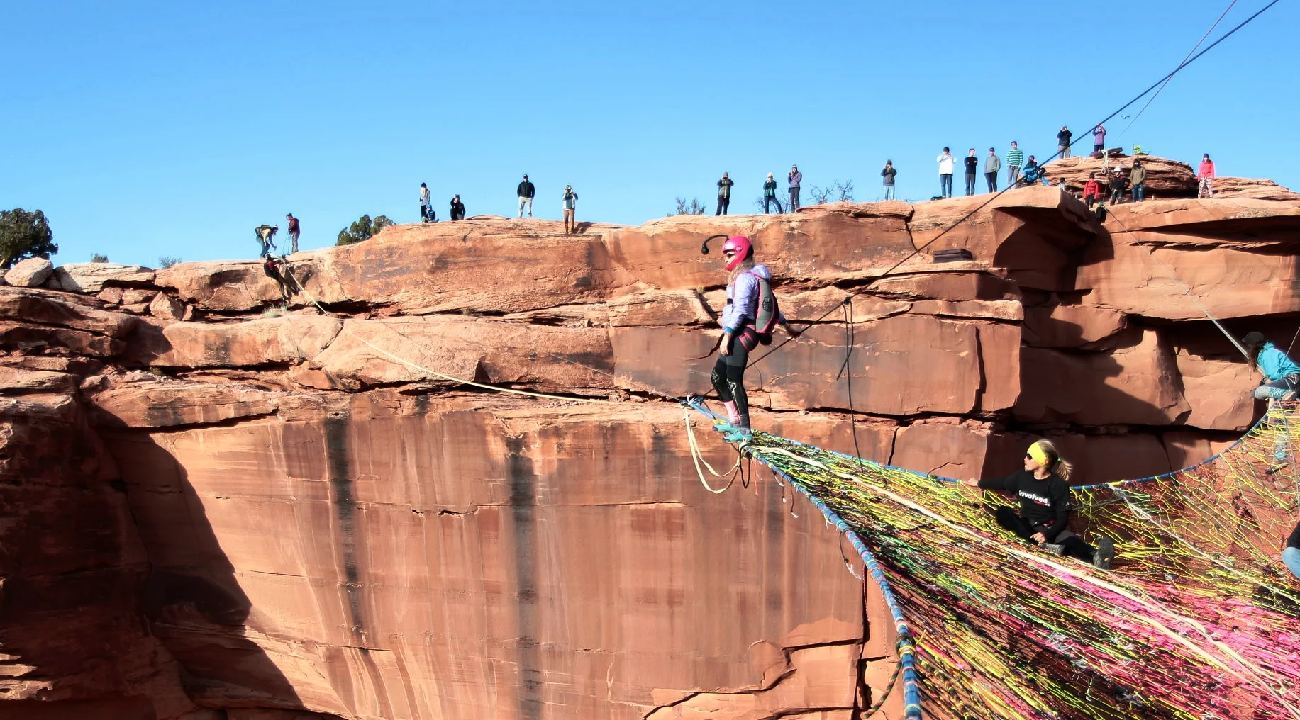 "BASE" is an acronym that stands for four categories of fixed objects from which one can jump: Building, Antenna, Span, and Earth (cliff). And sometimes well, she just jumps off whatever she can, like Aerial Silks strung to a thousand foot building in Malaysia.